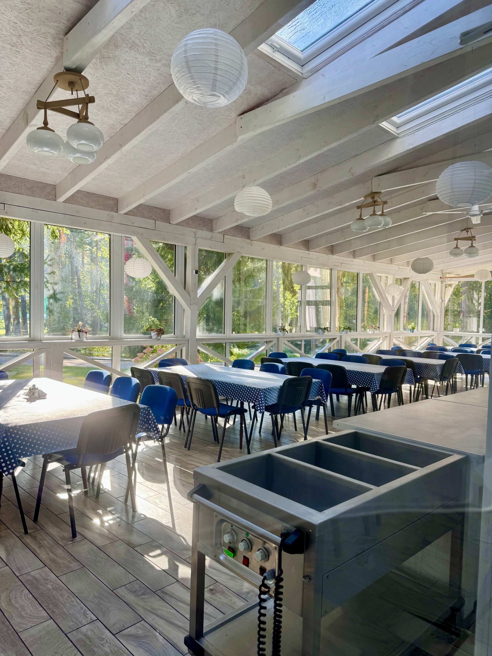 W przypadku deszczowych dni zajęcia przenoszą się do sal wewnętrznych (w tym z lustrami), gdzie można bezpiecznie prowadzić treningi, warsztaty, zajęcia taneczne czy gry integracyjne. Dzięki temu aktywności trwają bez względu na pogodę.