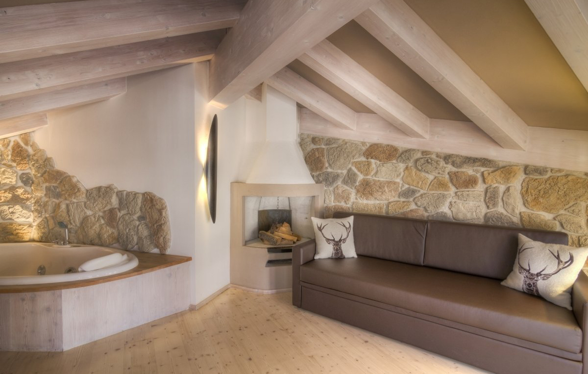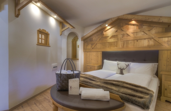 Przestronna i komfortowy suite z antresolą wita gości, oferując im możliwość relaksu w wannie z hydromasażem znajdującej się na drugim poziomie. Wyposażona jest zarówno w wannę, jak i prysznic z hydromasażem. Urządzona z dbałością o detale w typowym górskim stylu, w całości z drewna świerkowego, stanowi prawdziwą perłę hotelu.