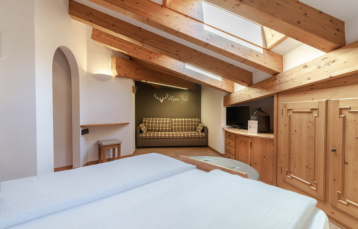 Dla tych, którzy szukają nie tylko pokoju, lecz przestrzeni pełnej spokoju i relaksu. Pokoje Family Catinaccio, nowo wybudowane i w pełni wyposażone, zostały zaprojektowane z myślą o gościach pragnących spędzić wakacje w harmonii z naturą, a przede wszystkim z samym sobą – otuleni ciepłą i odprężającą atmosferą.