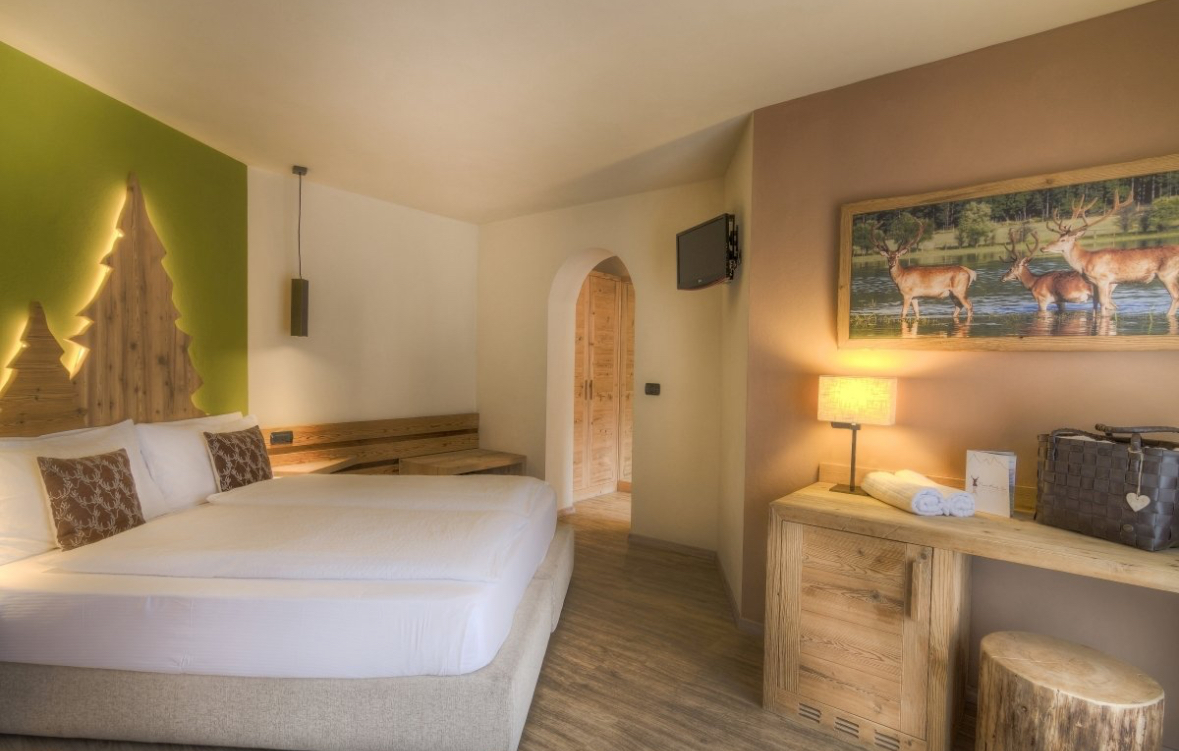 Hotel otoczony jest górskimi łąkami oraz lasami, w otulinie masywów Catinaccio, Rosengarten i Monzoni, dzięki czemu z wielu pokoi i przestrzeni wspólnych można podziwiać zapierającą dech panoramę Dolomitów . Cicha okolica, z dala od głównych dróg, sprzyja regeneracji – możliwe są spacery i aktywność na świeżym powietrzu od razu po wyjściu z hotelu.