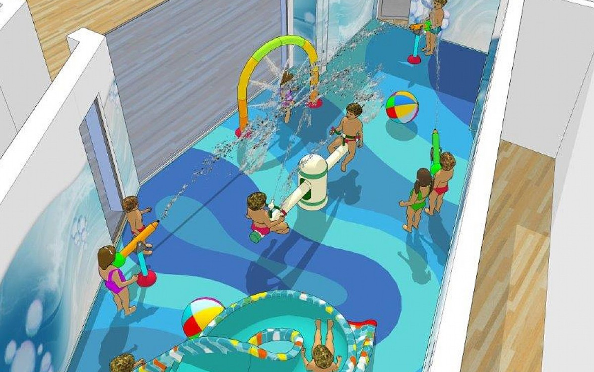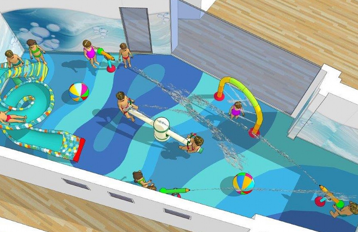 - kolorowe fontanny, zjeżdżalnie, wodne tunele i obręcze