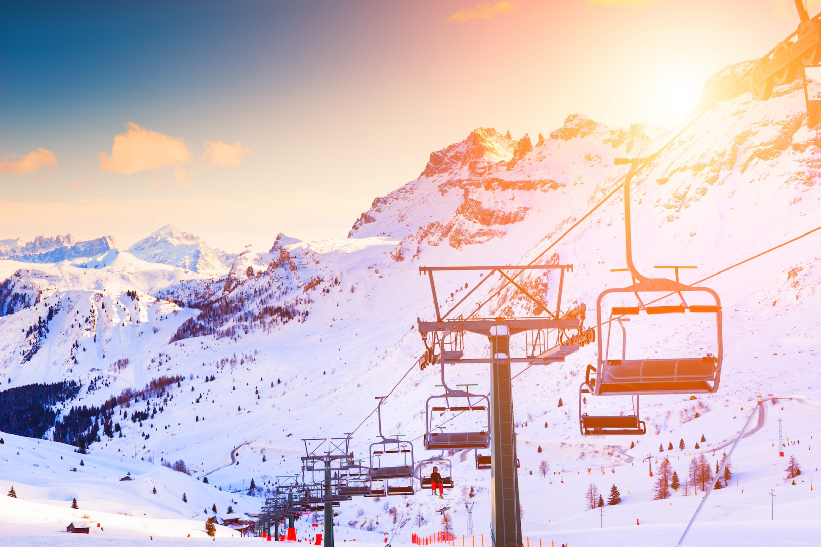 - 25 wyciągów krzesełkowych (część z osłonami i podgrzewanymi siedzeniami)